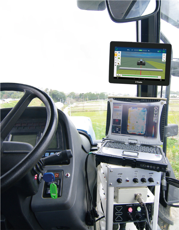 ●ほ場の高低差・面積測量はトラクタで走るだけです。