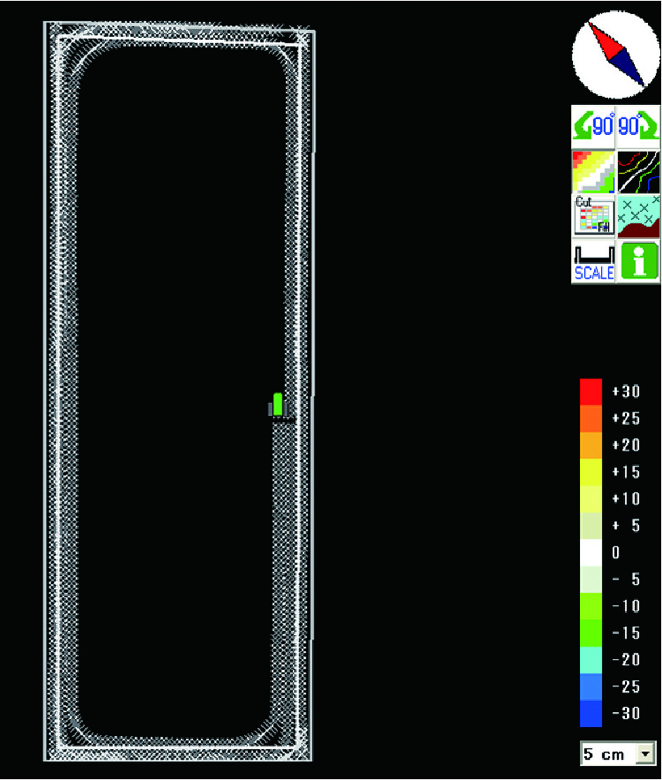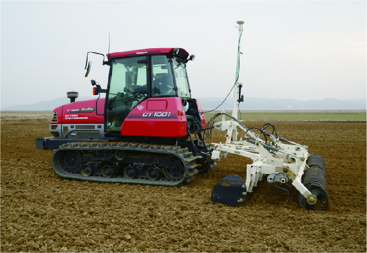 ほ場の外形と高低差をGPS衛星を利用して測量し、高低マップ、切土・盛土表、等高線図などを作成するソフトウエアを使った高精度均平作業システムです。